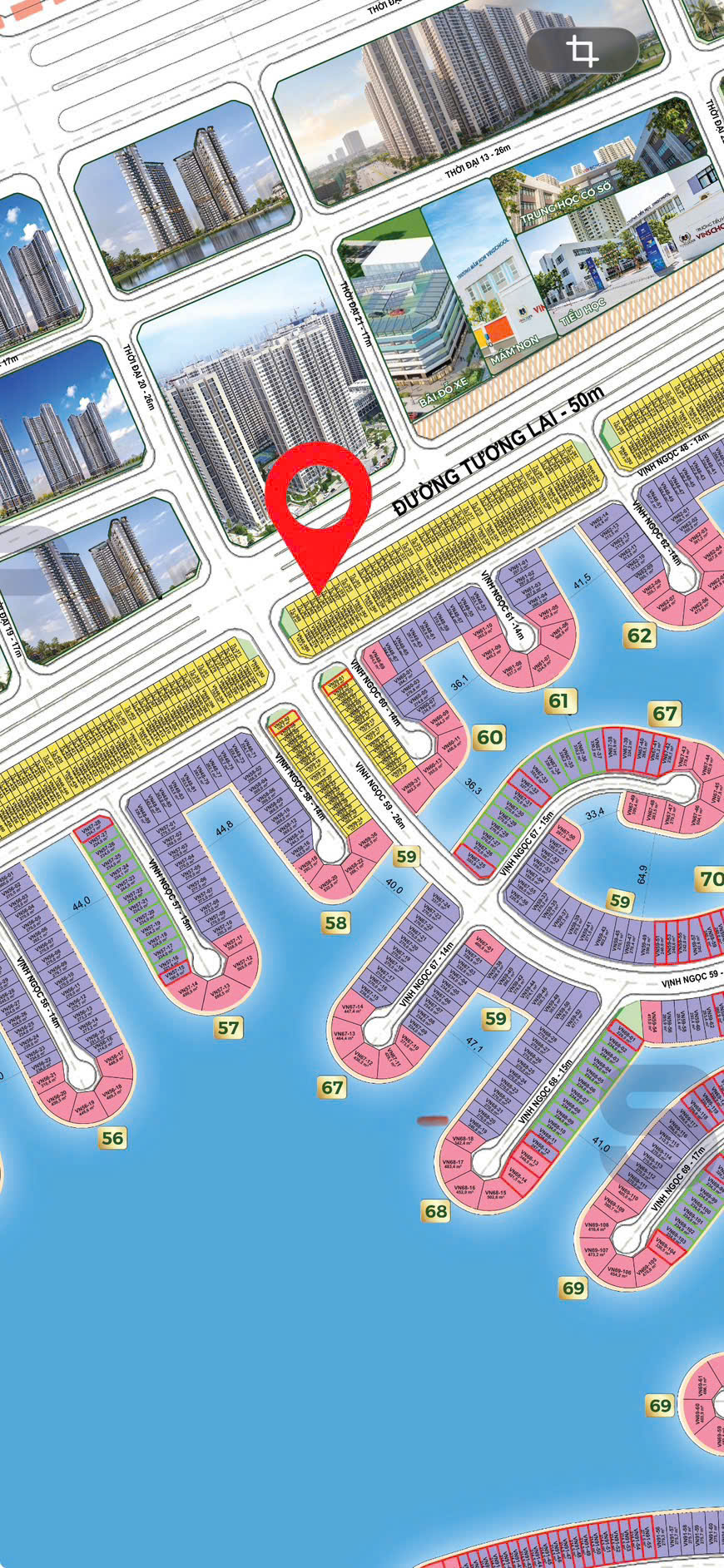 - Đặc điểm: Vị trí nhìn qua nhiều chung cư sắp khởi công, trường học, bệnh viện, siêu thị, nhà hát, sân golf – khu vực phát triển mạnh mẽ của dự án Vinhomes Cần Giờ