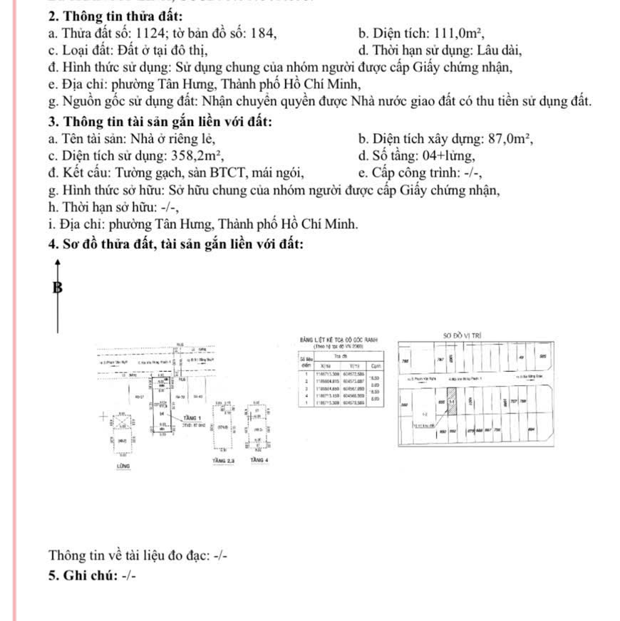 • Kết cấu: Trệt + lửng + 3 lầu, tổng diện tích sàn ~720m², thiết kế 10 phòng ngủ + 12 WC