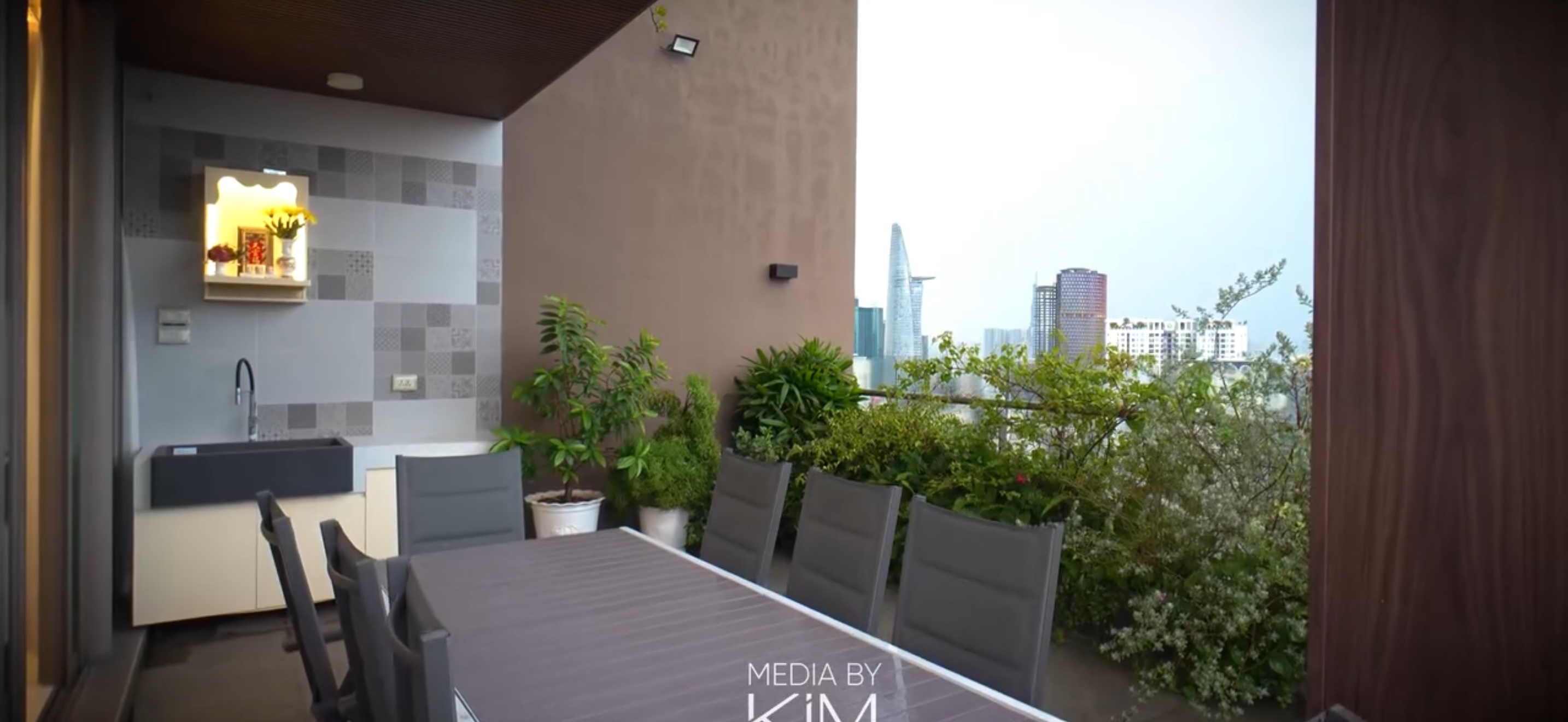 - Thiết kế penthouse 2 tầng với sân vườn riêng 93m², không gian riêng tư.