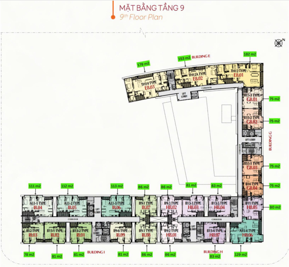 Mặt Bằng Tầng 9 The Peak – M8B