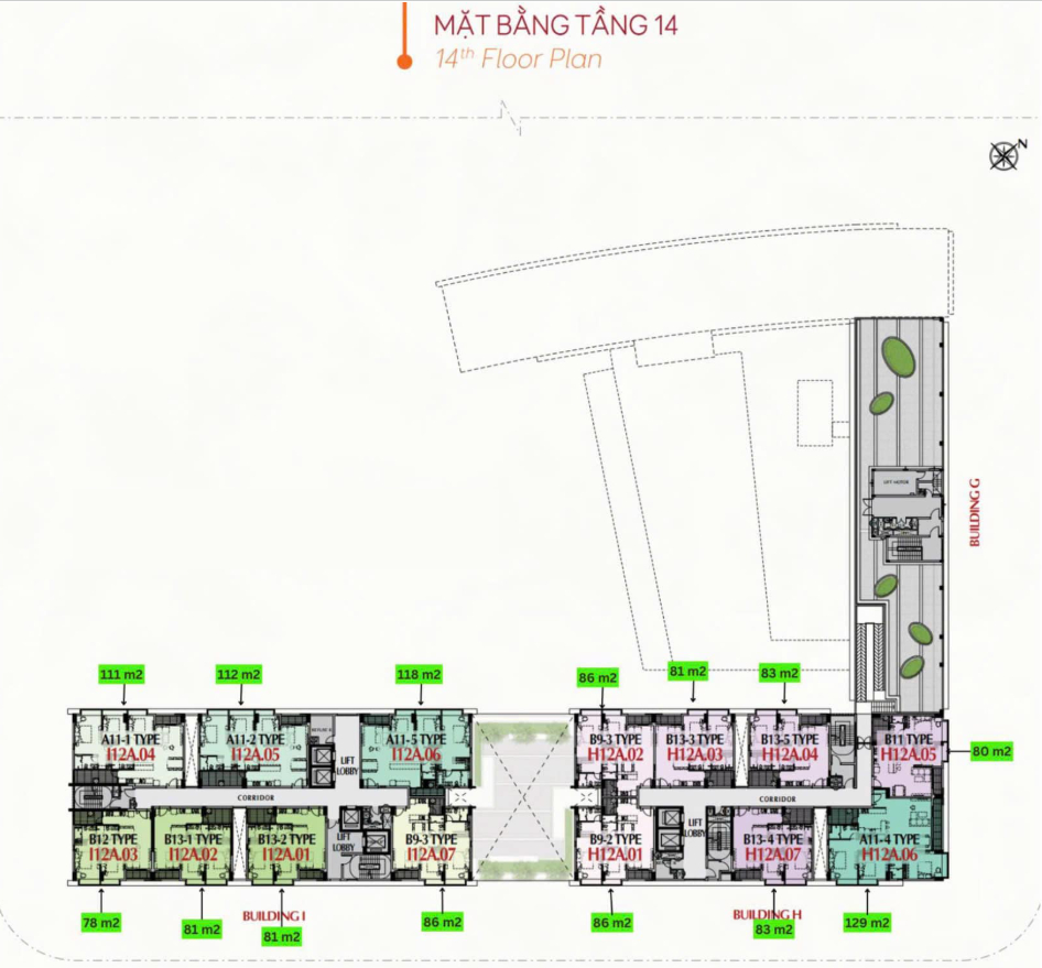 Mặt Bằng Tầng 14 The Peak – M8A