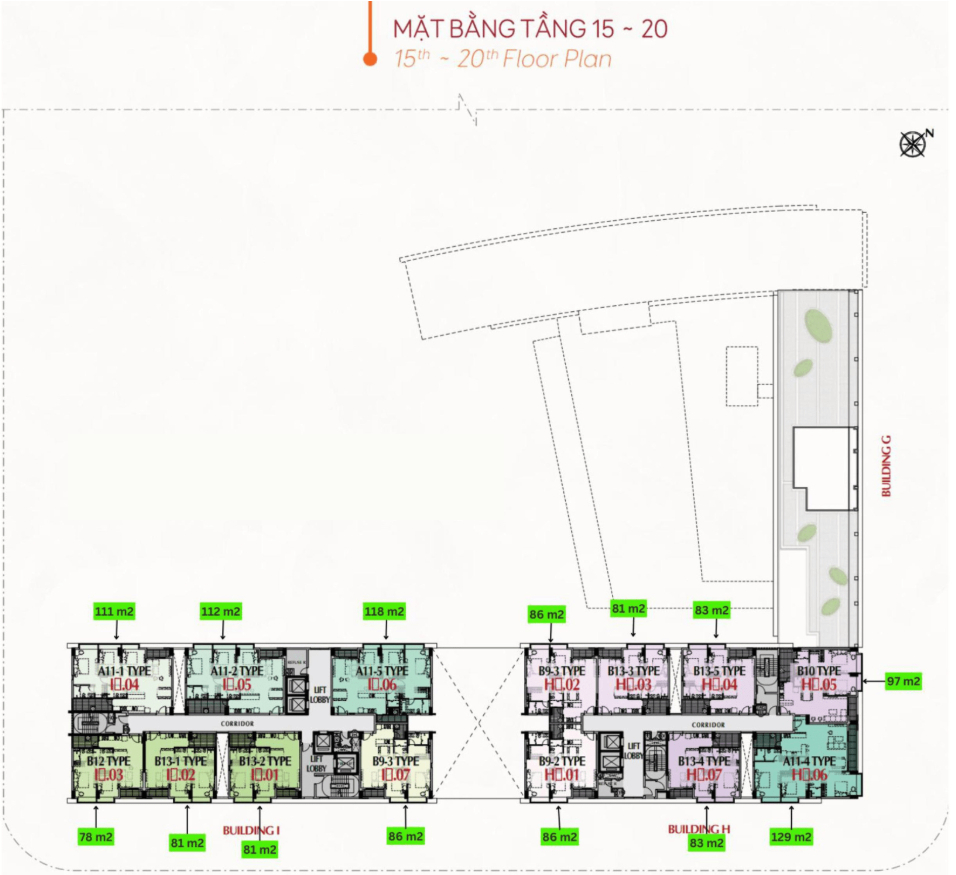 Mặt Bằng Tầng 15~20 The Peak – M8B