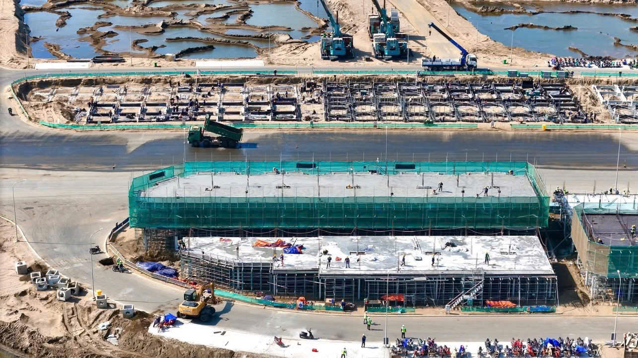 Chỉ sau gần 1 năm khởi công chính thức (19/4/2025), siêu đô thị lấn biển Vinhomes Green Paradise Cần Giờ – dự án quy mô 2.870 ha với vốn đầu tư 10 tỷ USD từ Vingroup – đang chứng kiến sự thay đổi diện mạo chóng mặt. Tháng 3/2026, đại công trường ven biển lớn nhất phía Nam tiếp tục duy trì nhịp thi công “thần tốc”, với hàng nghìn máy móc hoạt động liên tục ngày đêm. Dự án không chỉ vượt kế hoạch mà còn khẳng định bản lĩnh tiên phong, biến Cần Giờ từ “đảo hoang sơ” thành “kỳ quan đô thị tương lai” với hạ tầng đồng bộ, nhà ở thấp tầng lên tầng và các tiện ích biểu tượng dần lộ diện.