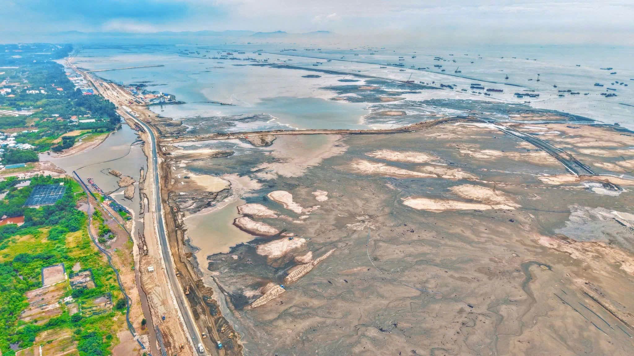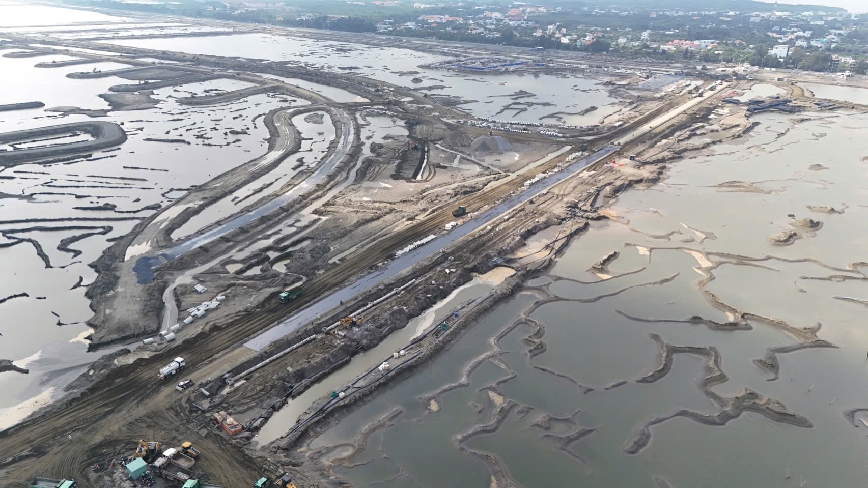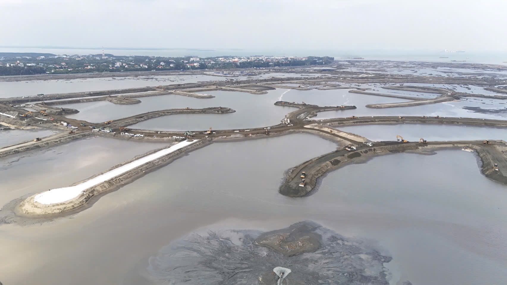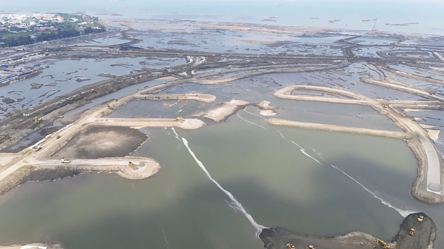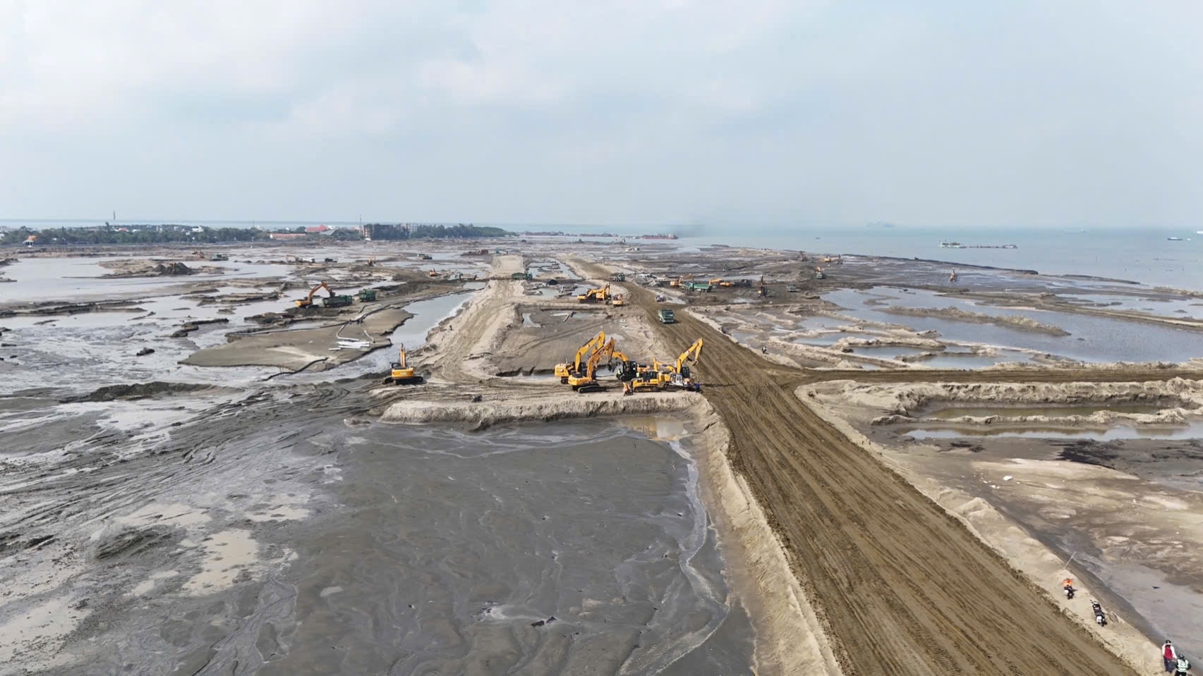 Theo ghi nhận, ở khu vực tiếp giáp giữa đất liền và vùng lấn biển, các tuyến đê bao, đường công vụ, bãi tập kết vật liệu và khu điều hành thi công đã hoàn thành giai đoạn chính. Điều này tạo điều kiện thuận lợi cho việc triển khai đồng loạt các hạng mục hạ tầng ở giai đoạn kế tiếp.