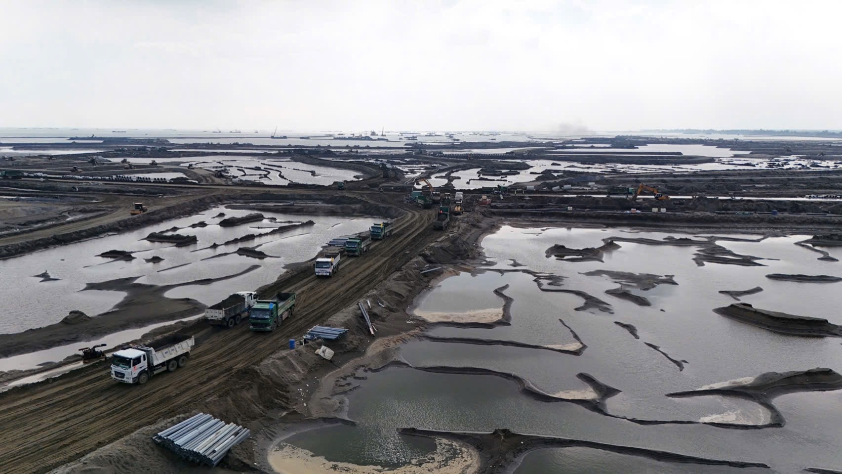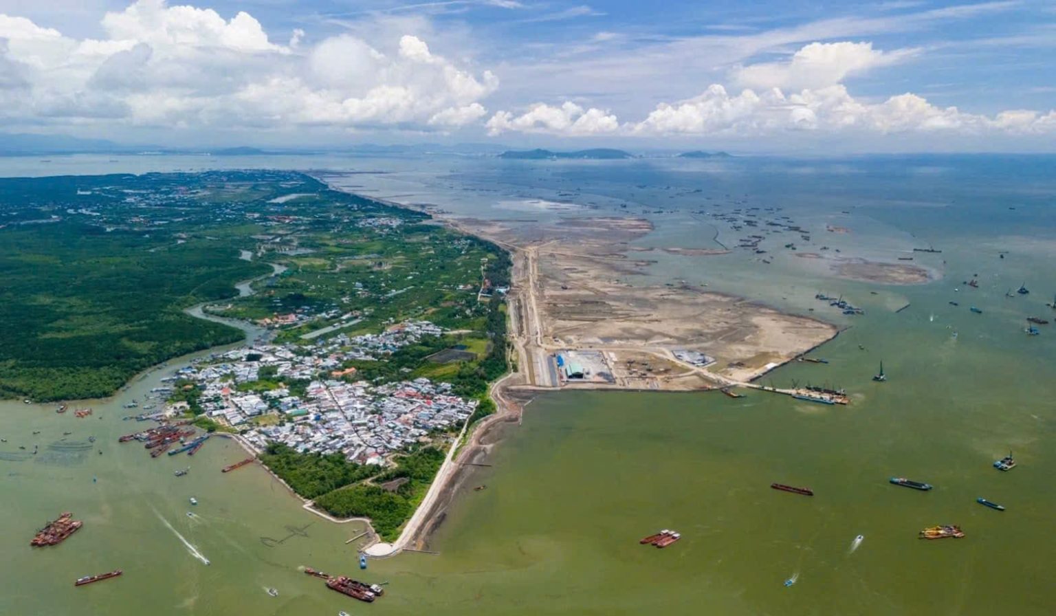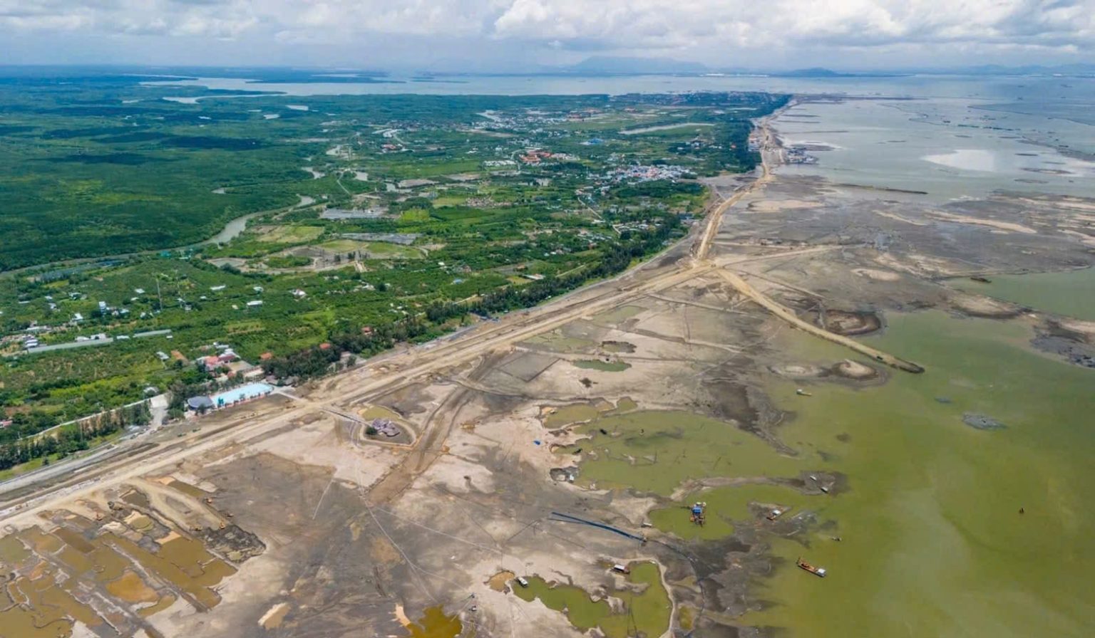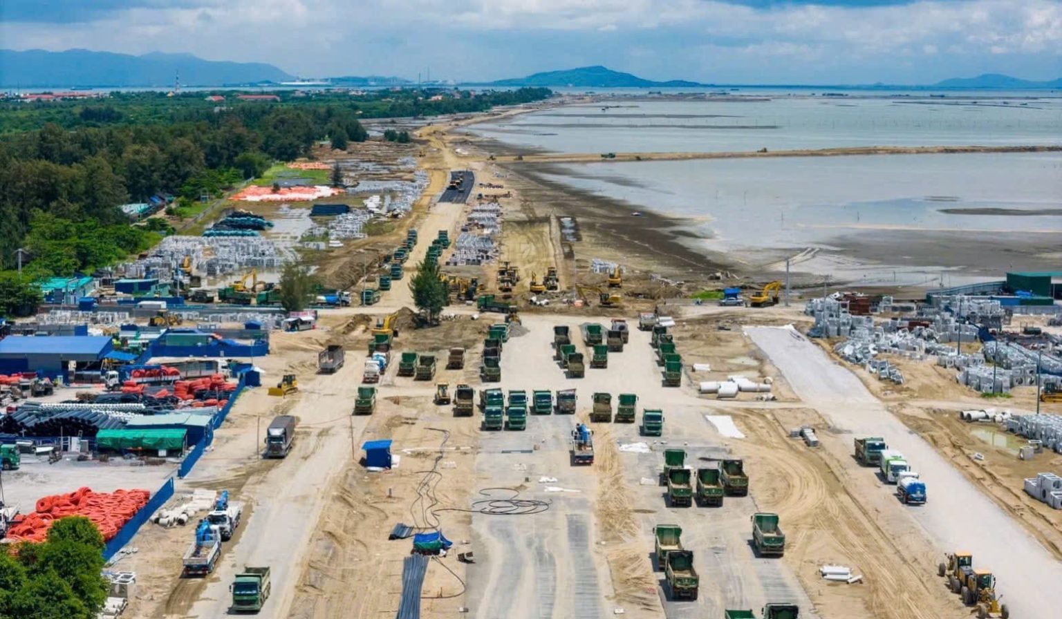 Theo ghi nhận, ở khu vực tiếp giáp giữa đất liền và vùng lấn biển, các tuyến đê bao, đường công vụ, bãi tập kết vật liệu và khu điều hành thi công đã hoàn thành giai đoạn chính. Điều này tạo điều kiện thuận lợi cho việc triển khai đồng loạt các hạng mục hạ tầng ở giai đoạn kế tiếp.