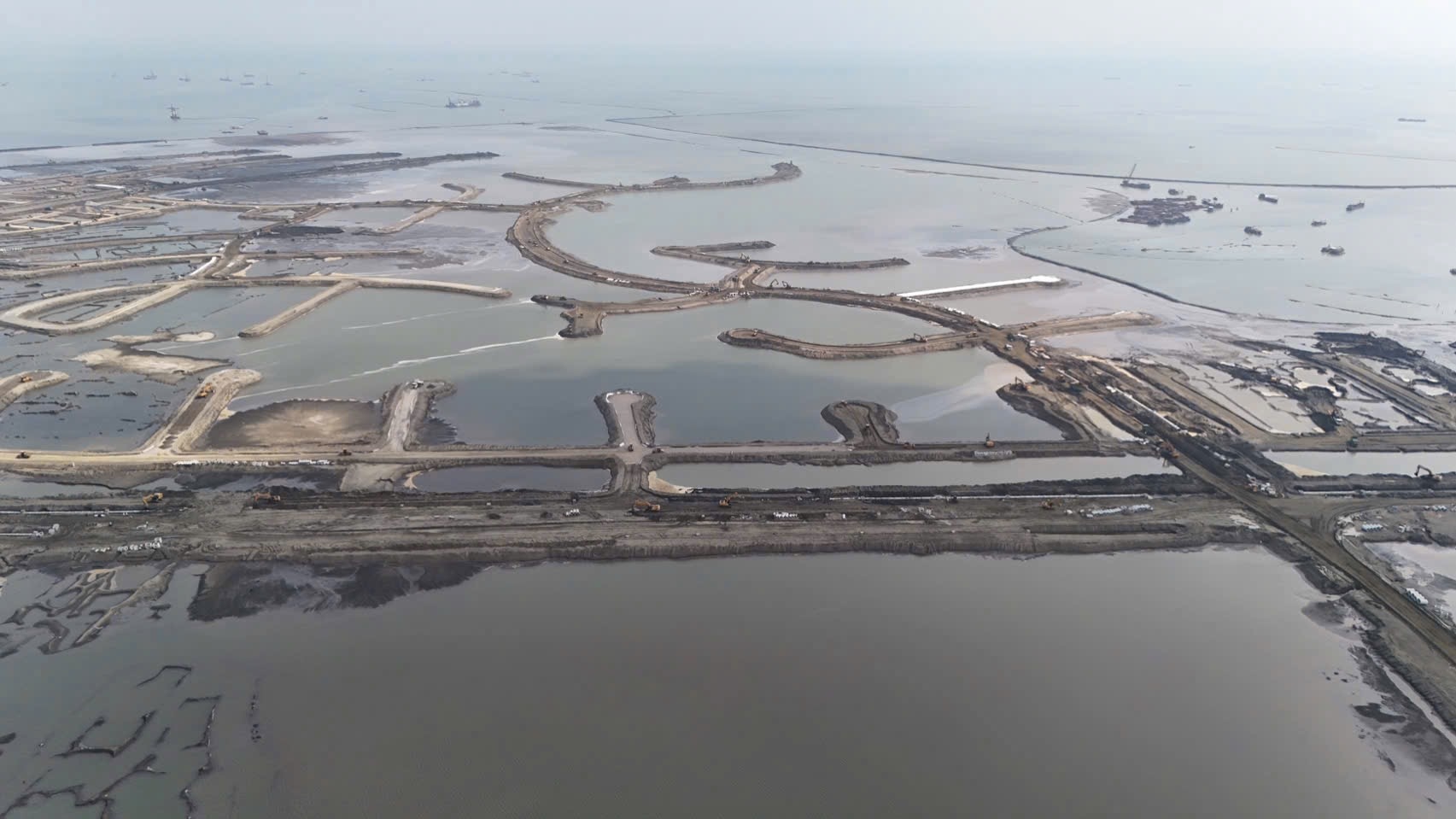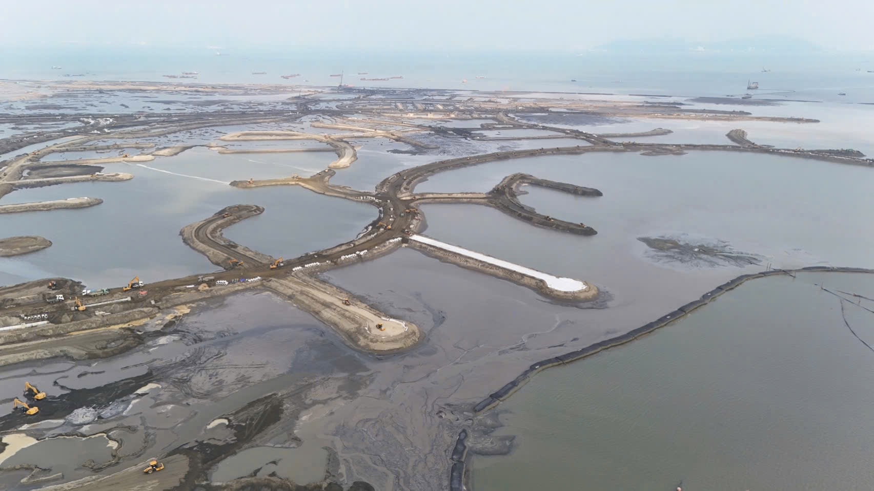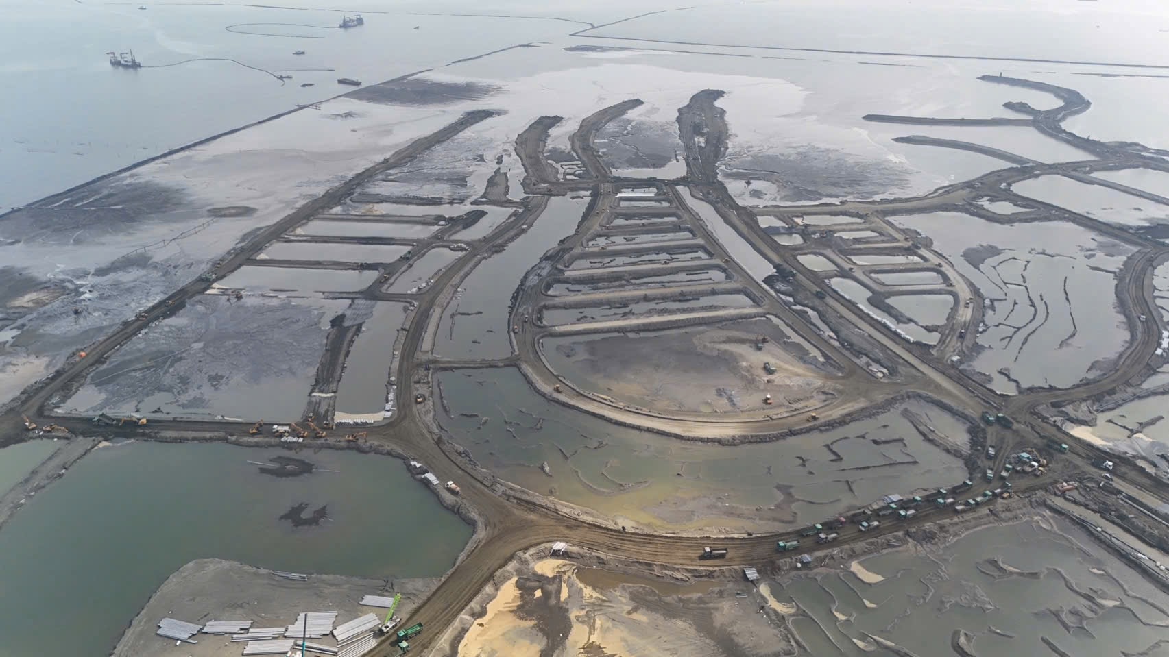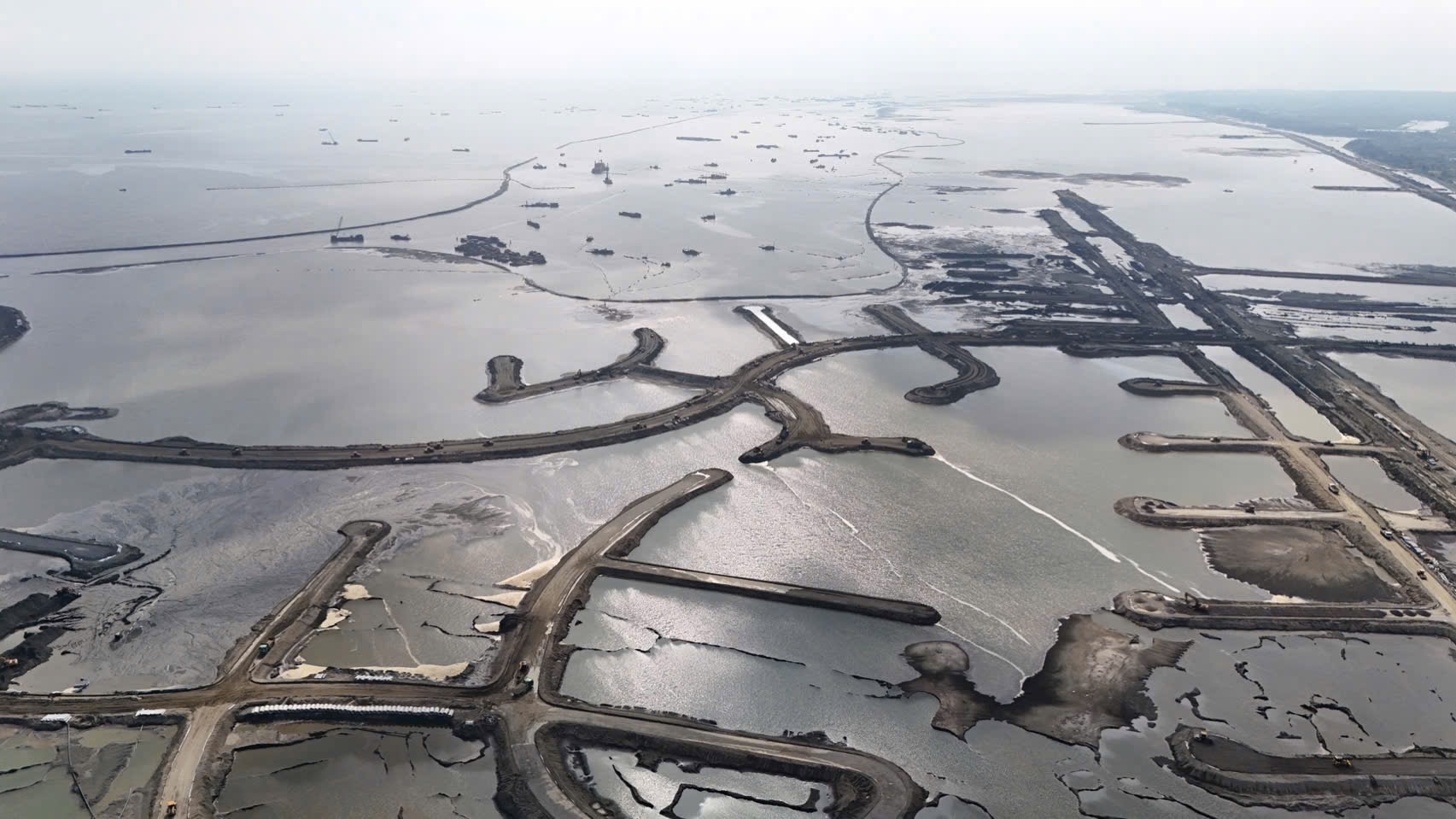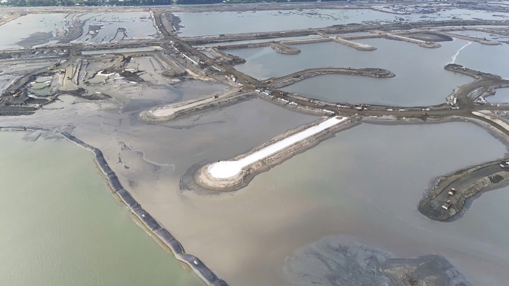 Theo ghi nhận, ở khu vực tiếp giáp giữa đất liền và vùng lấn biển, các tuyến đê bao, đường công vụ, bãi tập kết vật liệu và khu điều hành thi công đã hoàn thành giai đoạn chính. Điều này tạo điều kiện thuận lợi cho việc triển khai đồng loạt các hạng mục hạ tầng ở giai đoạn kế tiếp.
