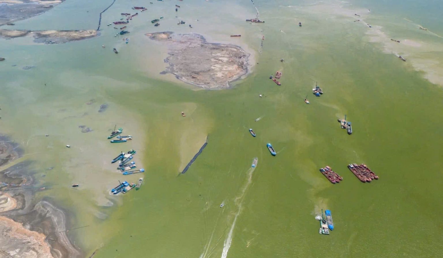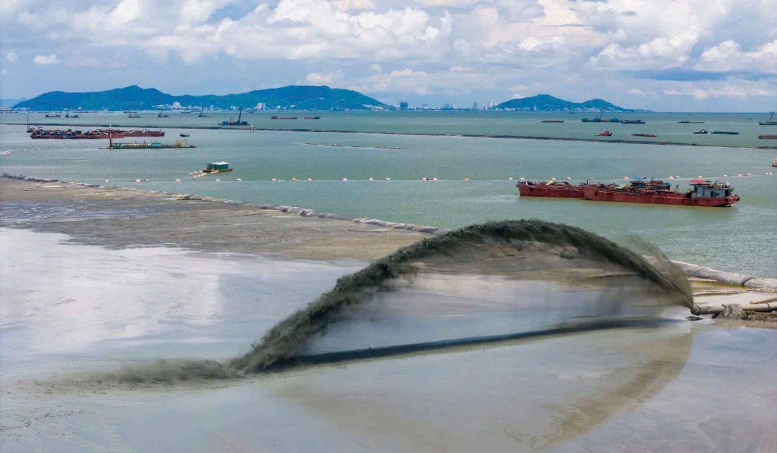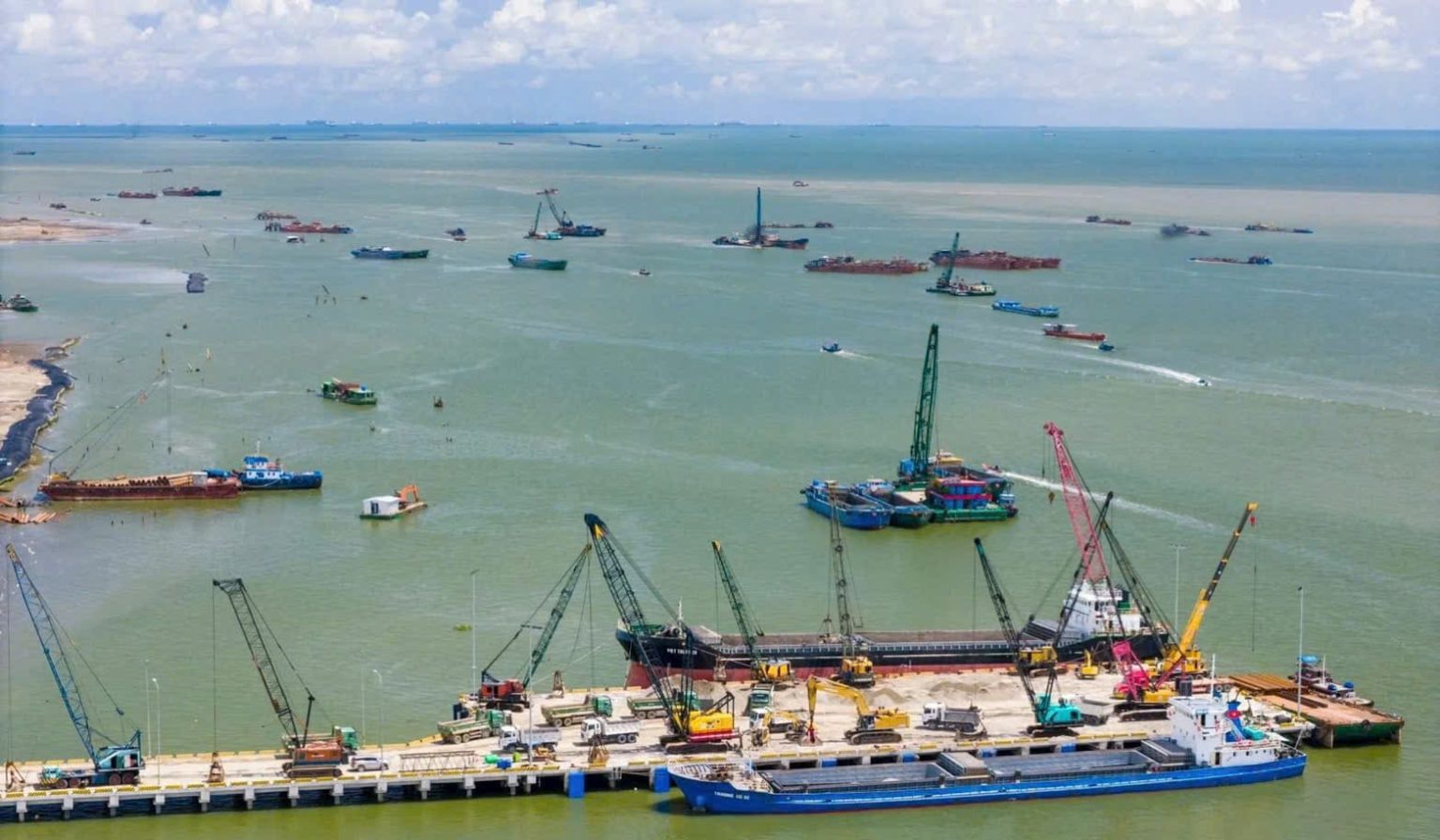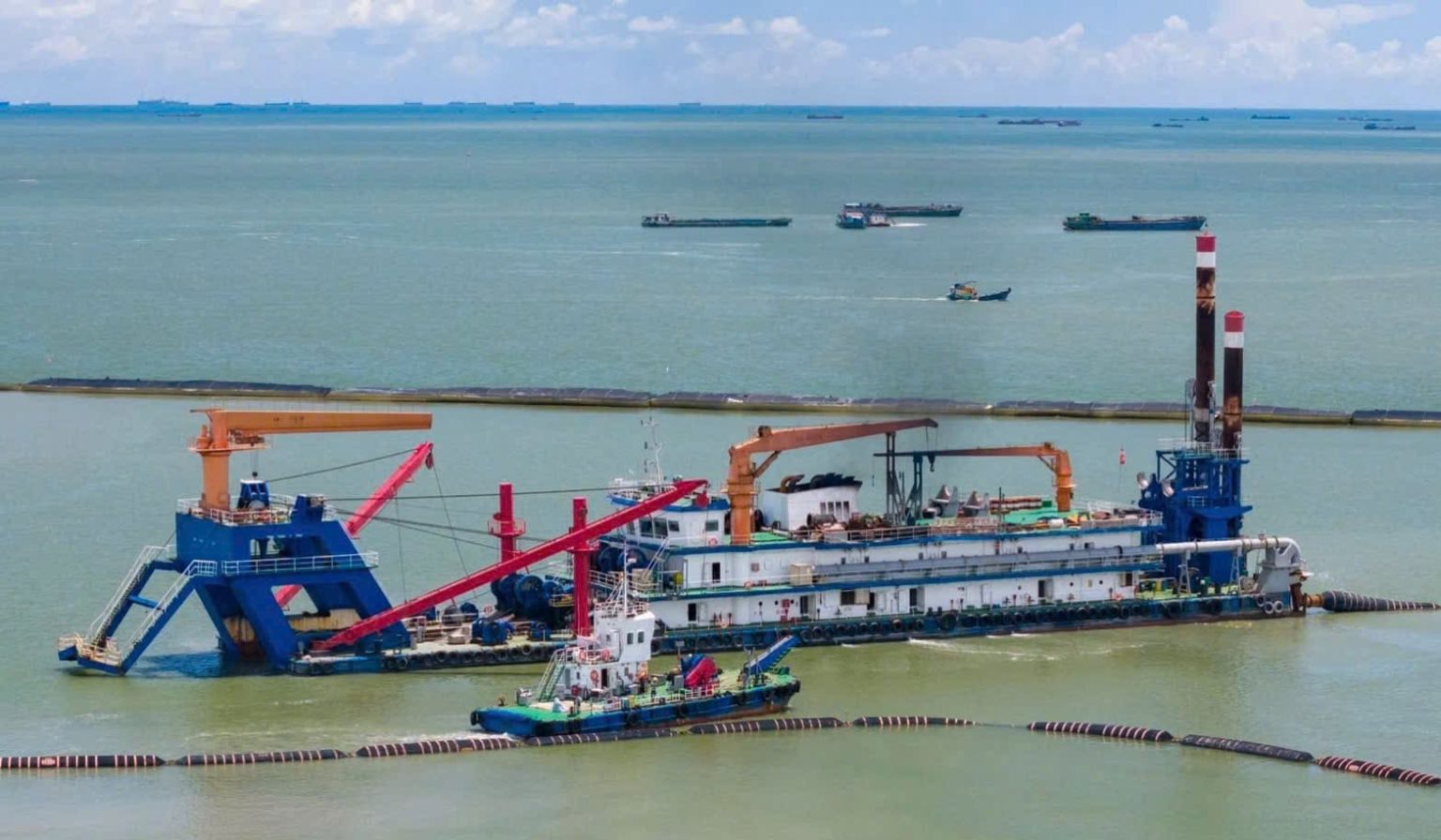 Ghi nhận thực tế cho thấy hàng trăm sà lan bơm cát đang hoạt động ngày đêm phục vụ công tác lấn biển, định hình diện mạo khu đô thị tương lai.