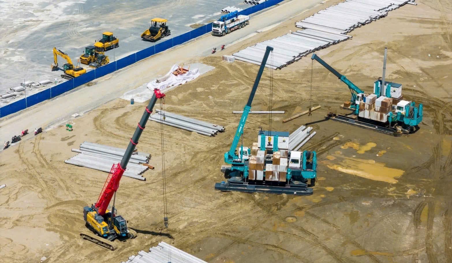 Song song đó, hàng vạn cọc xi măng đất (CDM) cũng đã được thi công nhằm gia cố nền đất, nâng cao khả năng chịu tải và độ bền vững công trình.